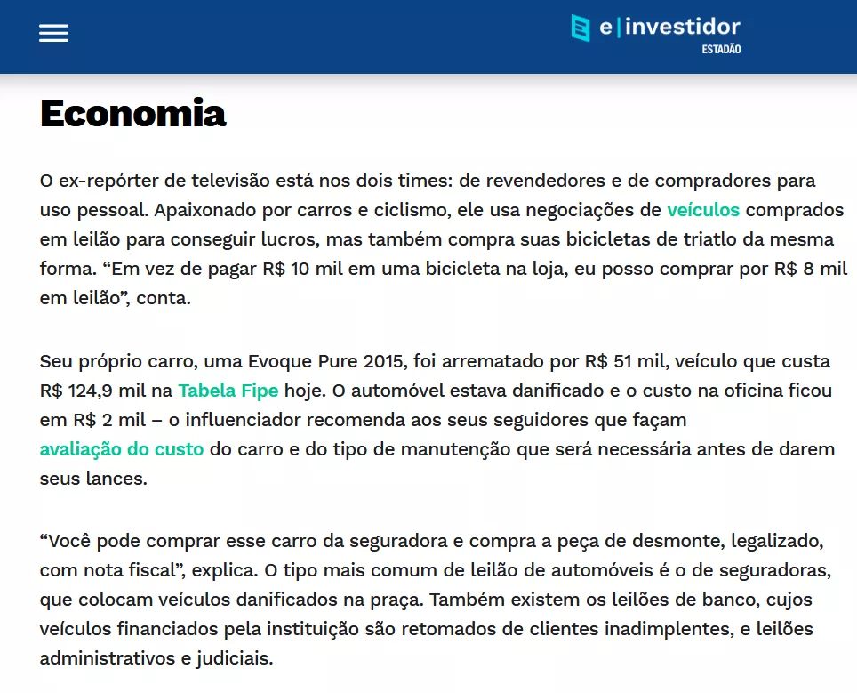 VEJA O QUE AS PRINCIPAIS PÁGINAS DE FINANÇAS E INVESTIMENTOS ESTÃO FALANDO SOBRE LEILÕES
